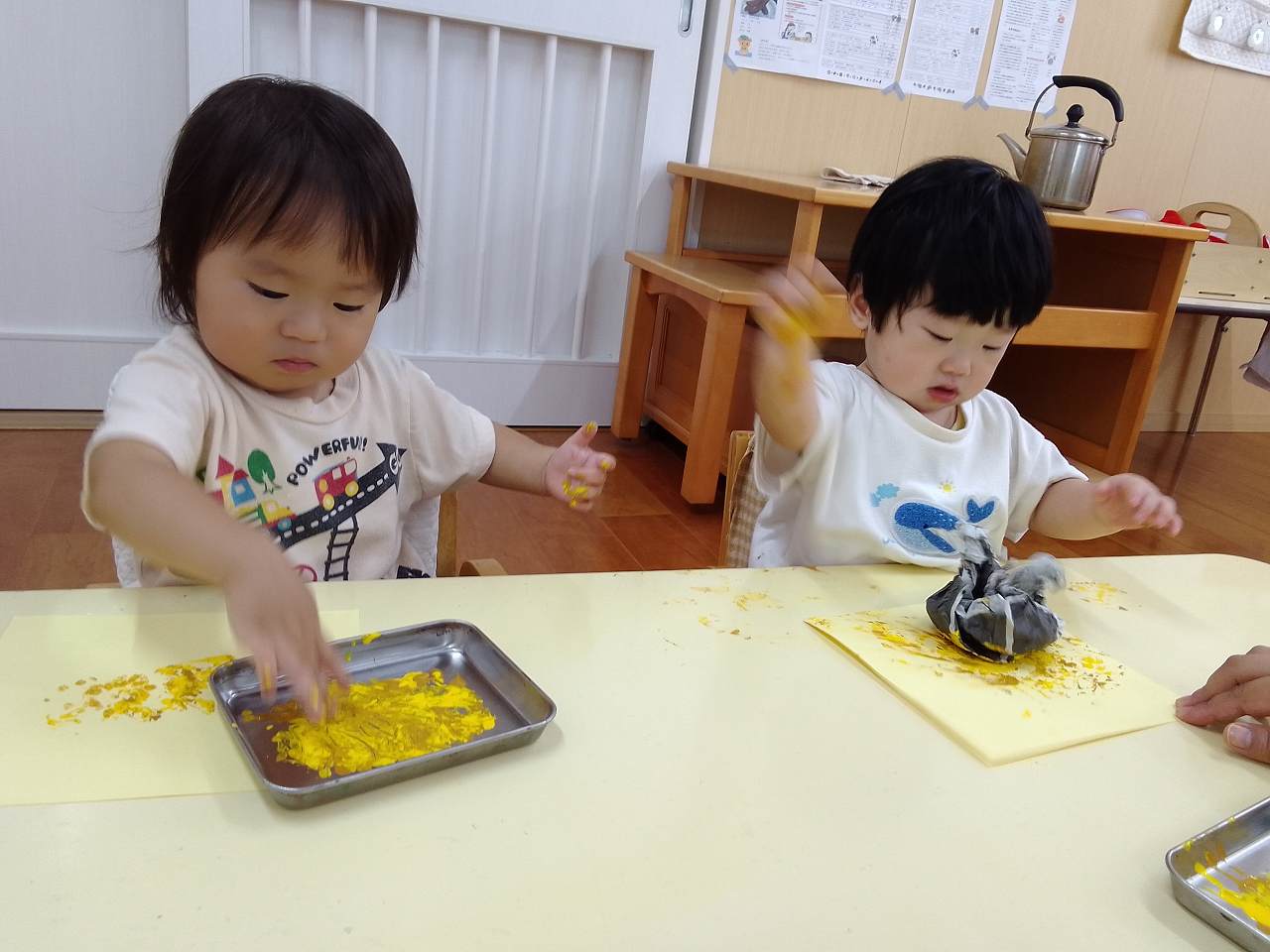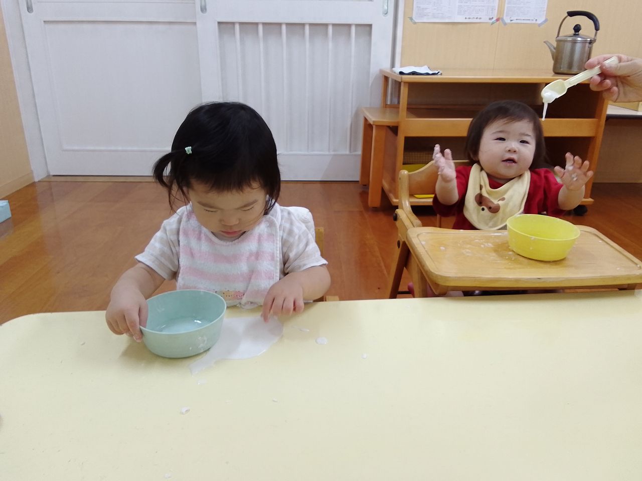 片栗粉あそびでは、とろ~っとした感触を楽しみました。