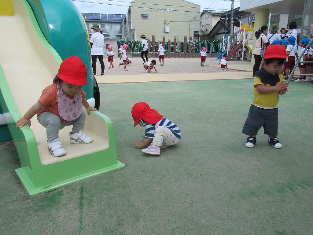 アンパンマンの遊具に興味を示したり、行きたいところへ行き探索活動をしたり、思い思いにあそびました。