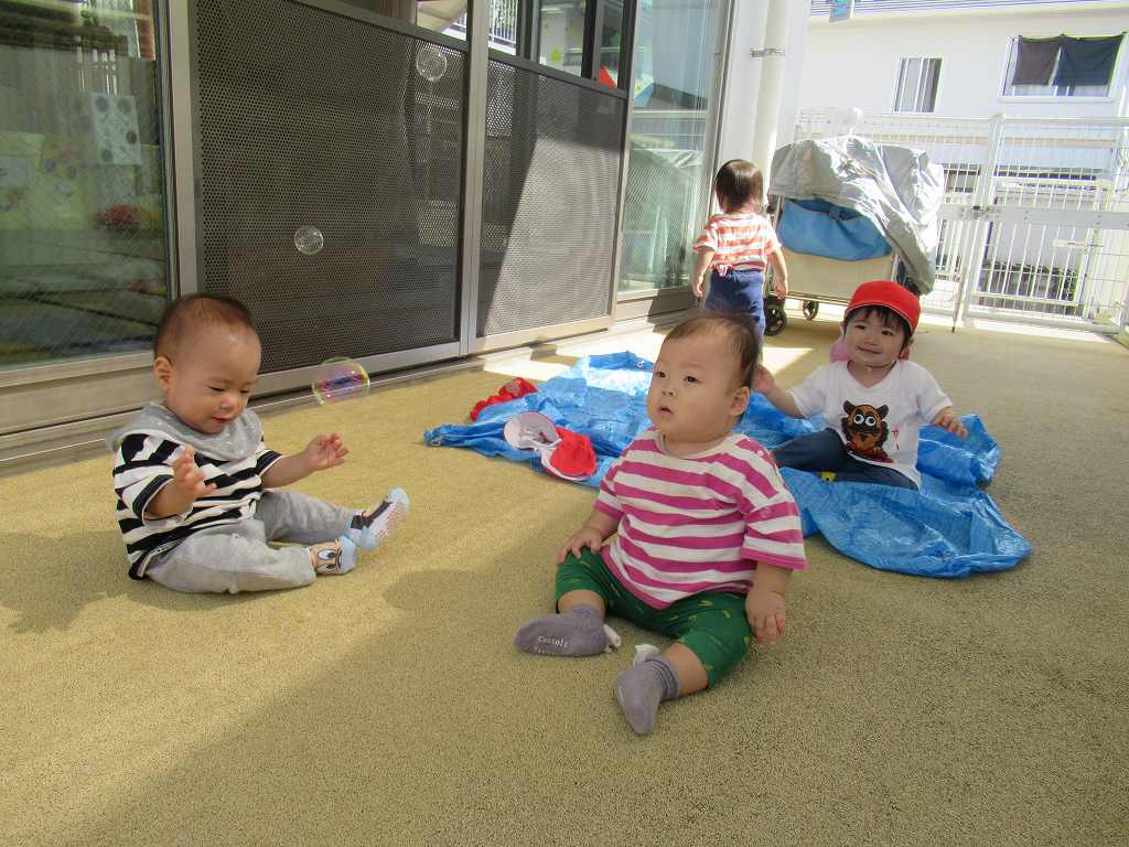 テラスでは、シャボン玉を見ながら外気浴をしました。