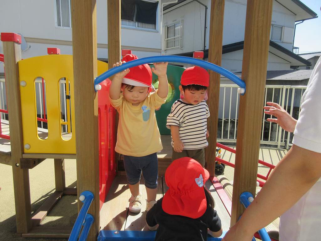 戸外に出て遊びました。