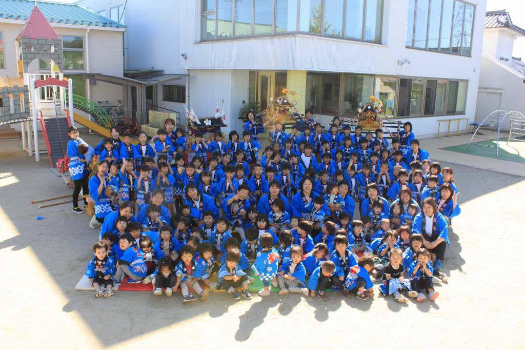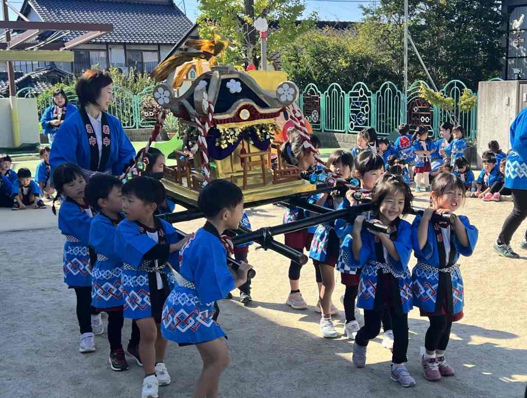 その後はゆり、うめぐみは「ワッショイ!ワッショイ!」お神輿を担いで園庭を歩きました。