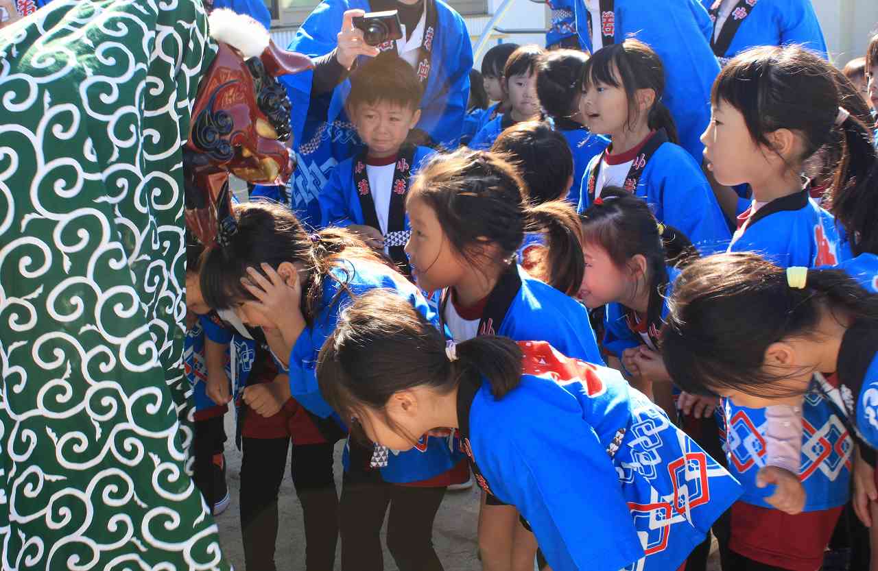怖くて涙が出る子もいましたが、勇気を出して頭を噛んでもらいました。