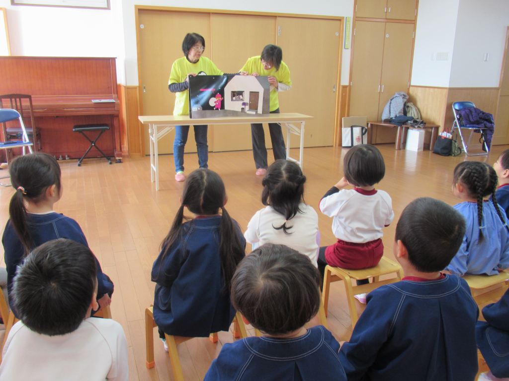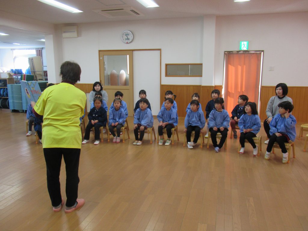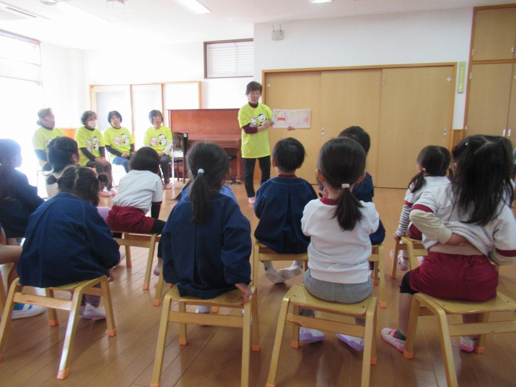 本日は「厚生保護女性会」のみなさんが来園してくださり3,4,5歳児を対象に絵本の読み聞かせをしてくださいました。