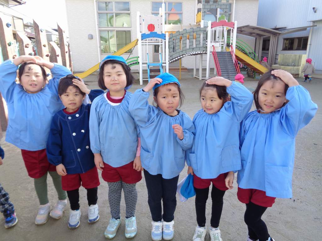 今年も一年元気に過ごせますように!とおでこに炭をぬりました。