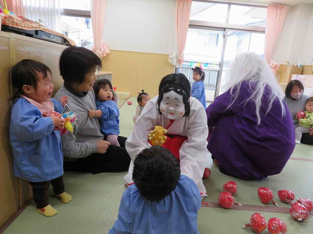 鬼が来ると涙も出ましたがりんごを投げてやっつけました。
