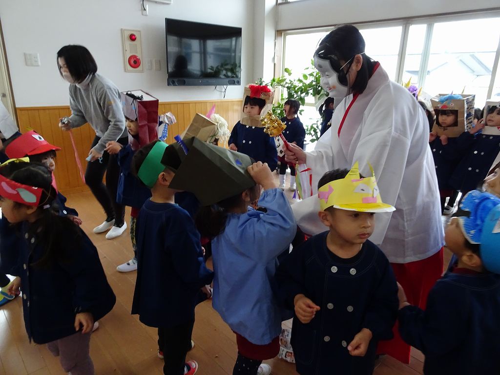 ゆり、うめ組は総社宮の節分祭に参加し、福豆をいただいて帰りました。
