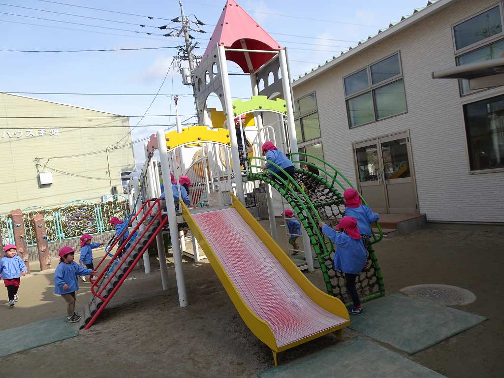 園庭でおにごっこをした後ついつい気になるひまわり城…