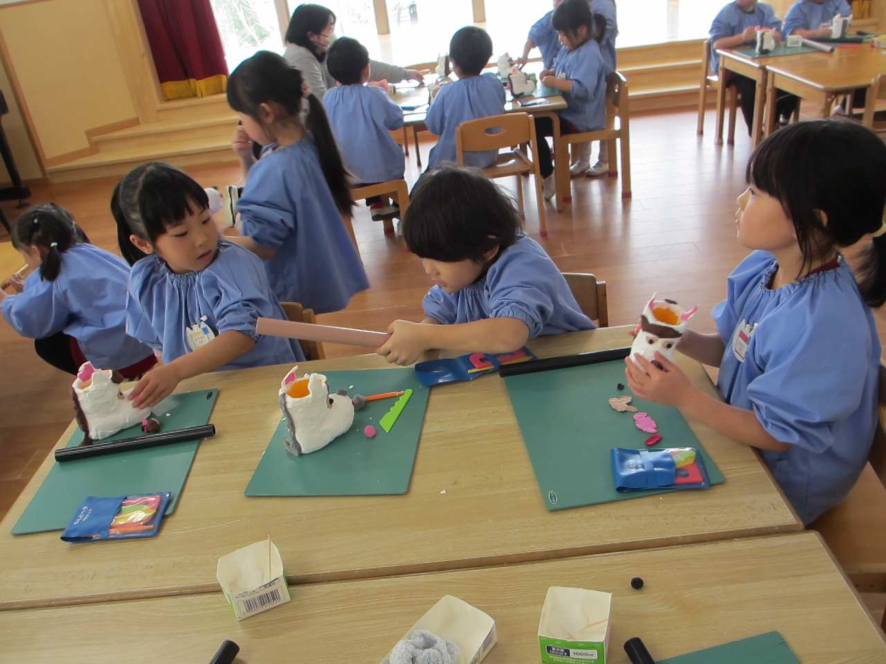 紙粘土を伸ばしたり、色を混ぜたり、型抜きをしたり・・・