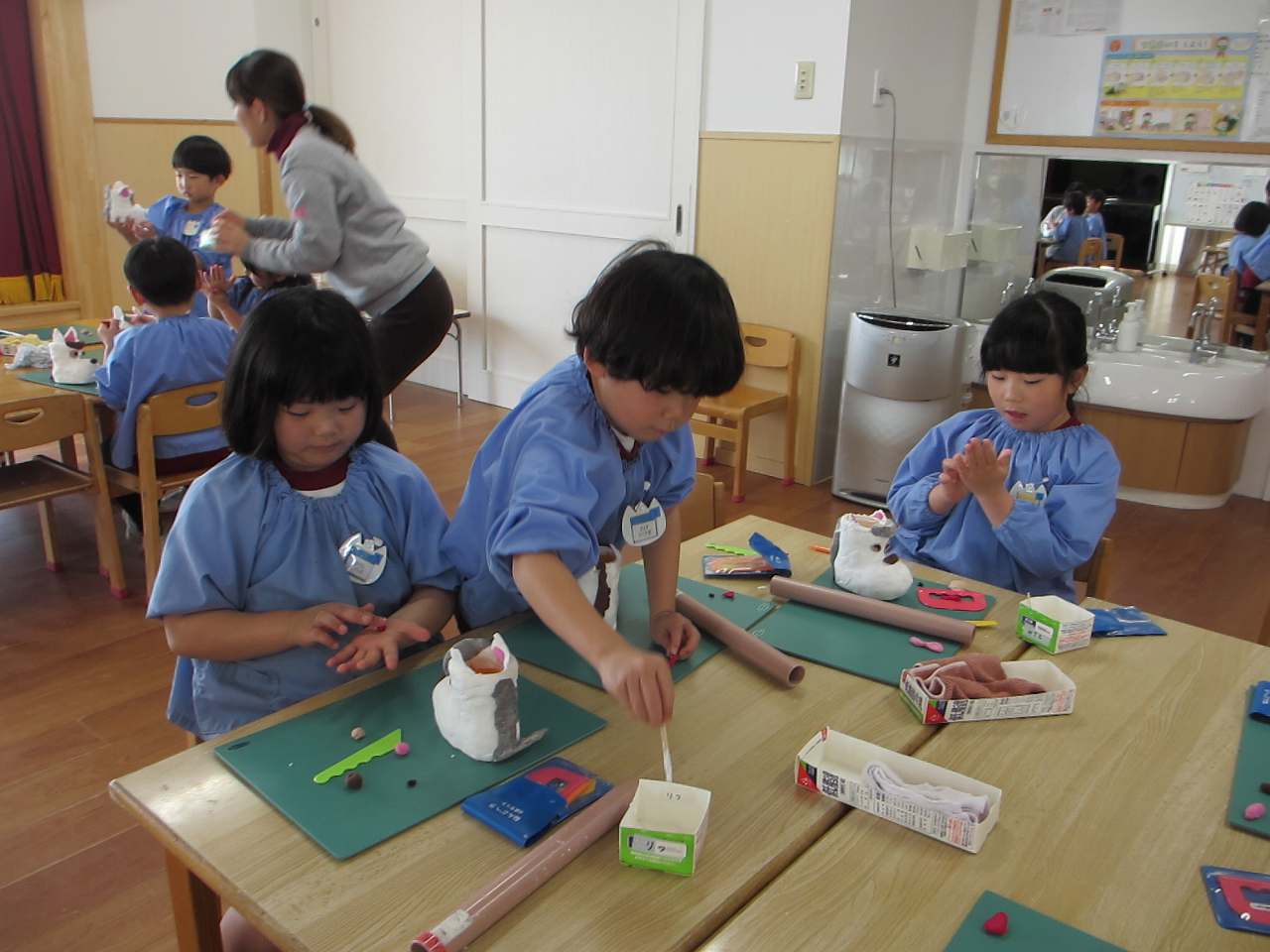 24日 保育園の理事をしてくださっている八木先生が、卒園記念の製作を教えにきてくださいました。