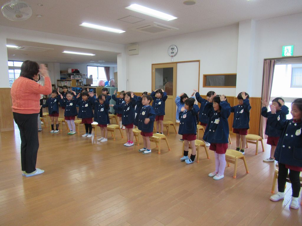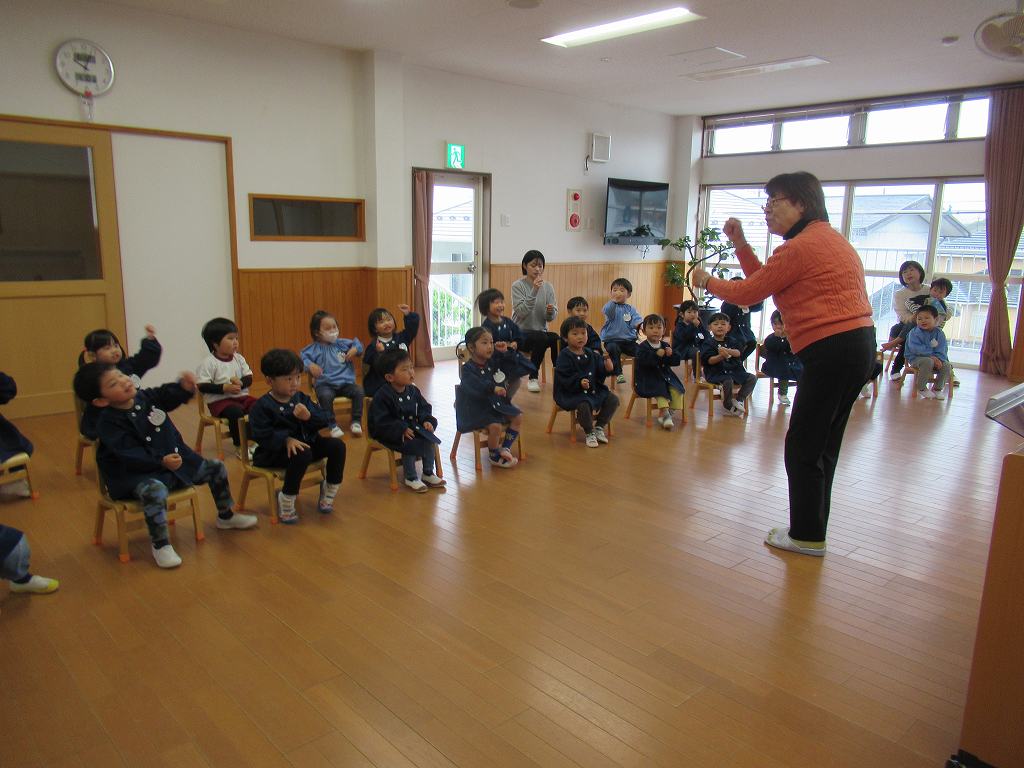 さくら組さんは初めての参加で最初はとってもお行儀よく座って鈴木先生の話しを聞きました。