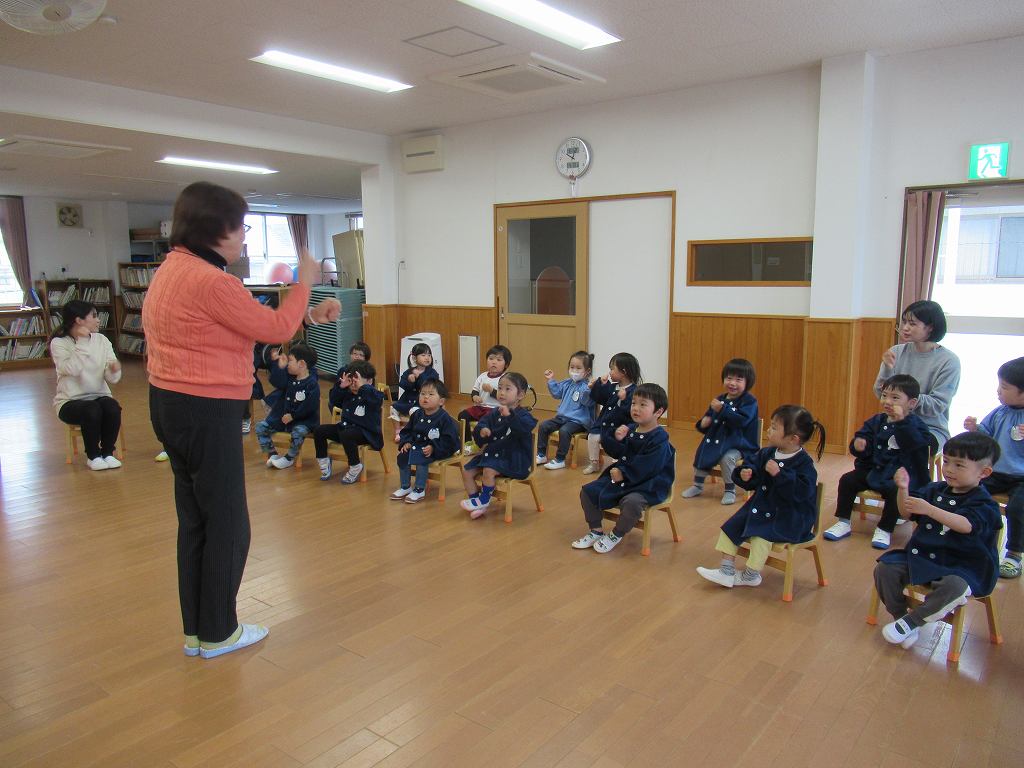 日頃歌っているうた「チューリップ」「ちょうちょ」など楽しんで歌いました。