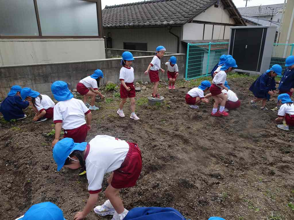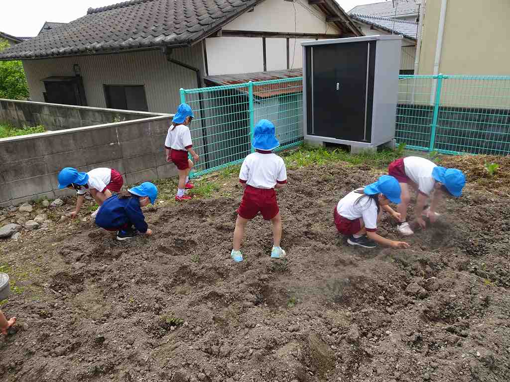 夏野菜を植えるために、みんなで土づくり!