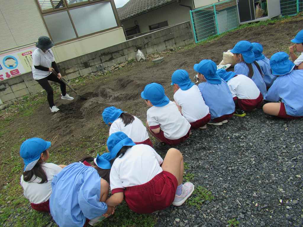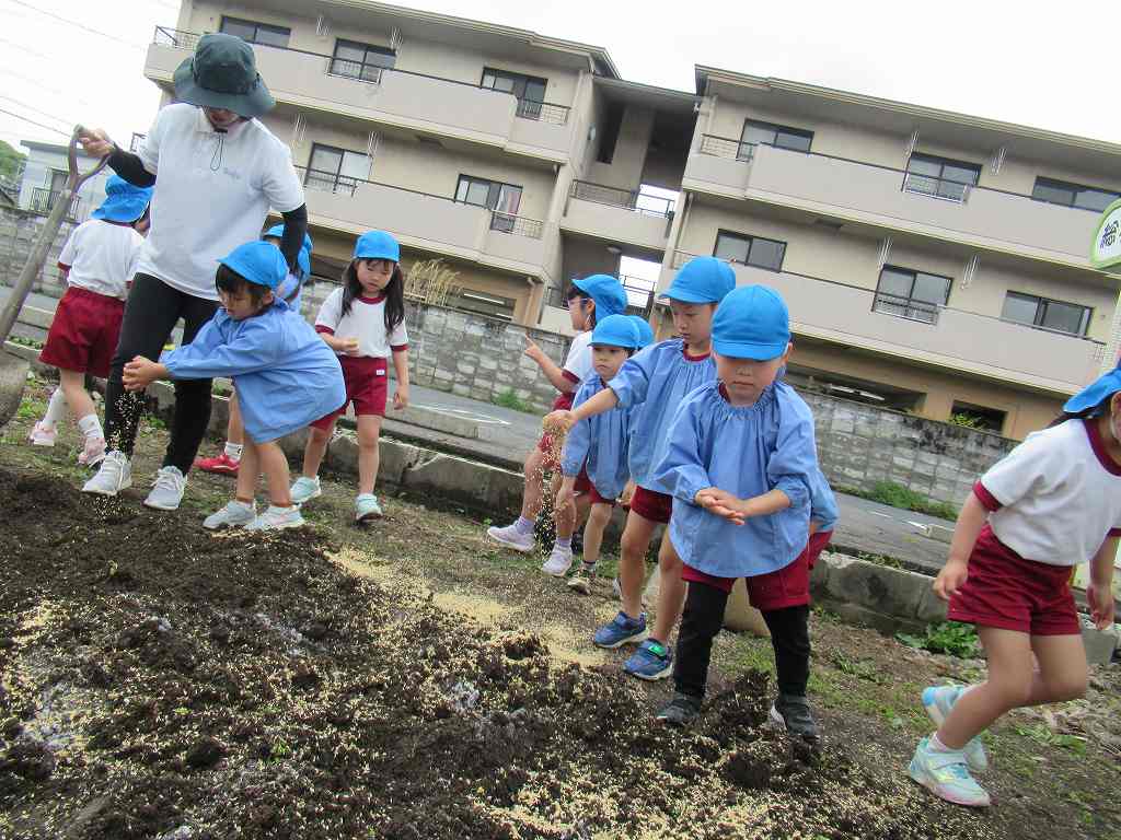 栄養いっぱいの土になりますように・・・と子どもたちと話をしながら、子どもたちにすくもをまいてもらいました。GWあけにはいよいよ苗植えです。