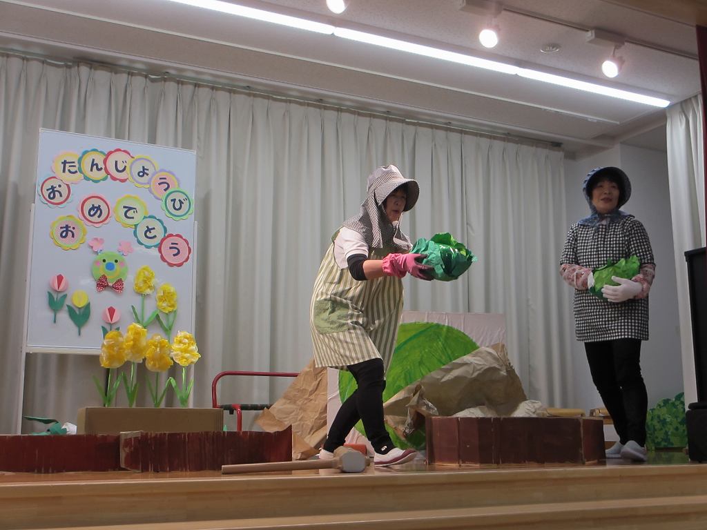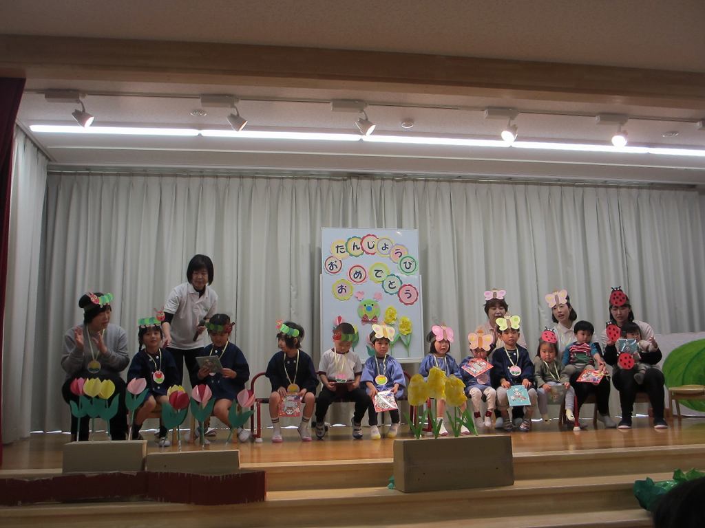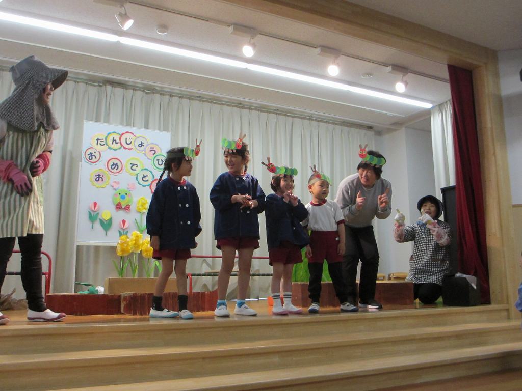 あおむしはどんどん大きくなり、次はかわいいちょうちょやてんとう虫が飛んできて、舞台の上はにぎやかになりました🐞